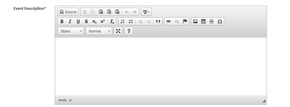 We only require an "Event Title" (keep it under 75 characters) plus the date & time of the event (make sure your time zone is correct) to get started.
