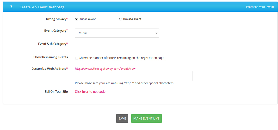Public event : Selecting this option makes your event live and visible for search engines to crawl for ranking.